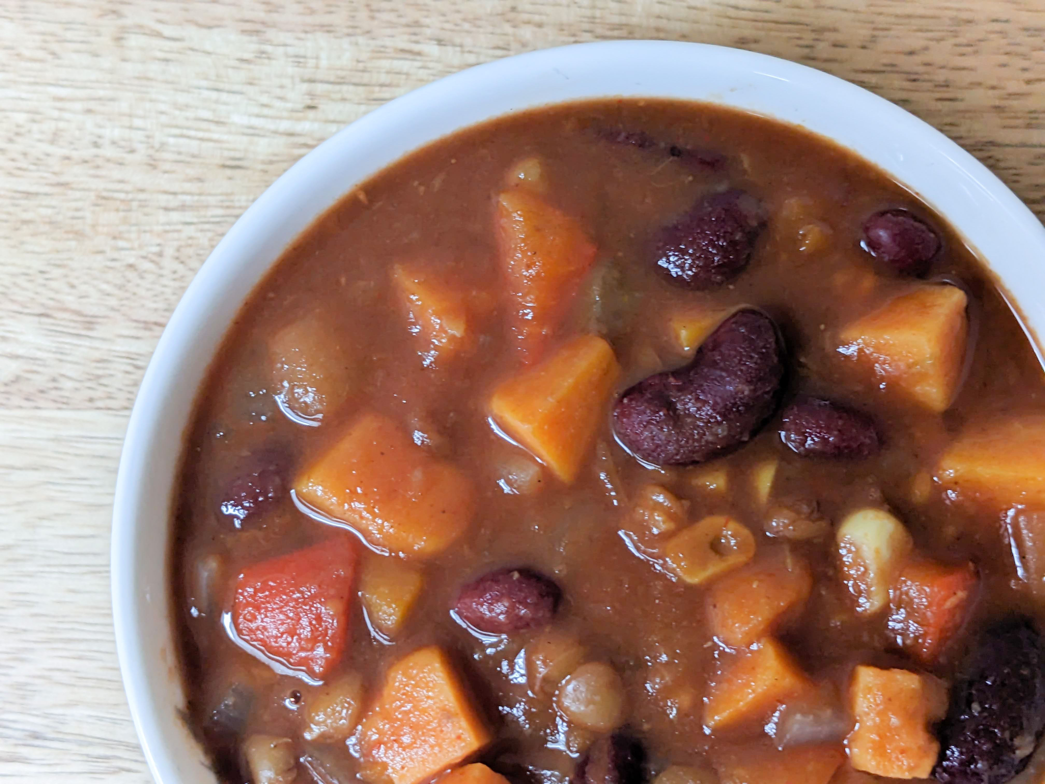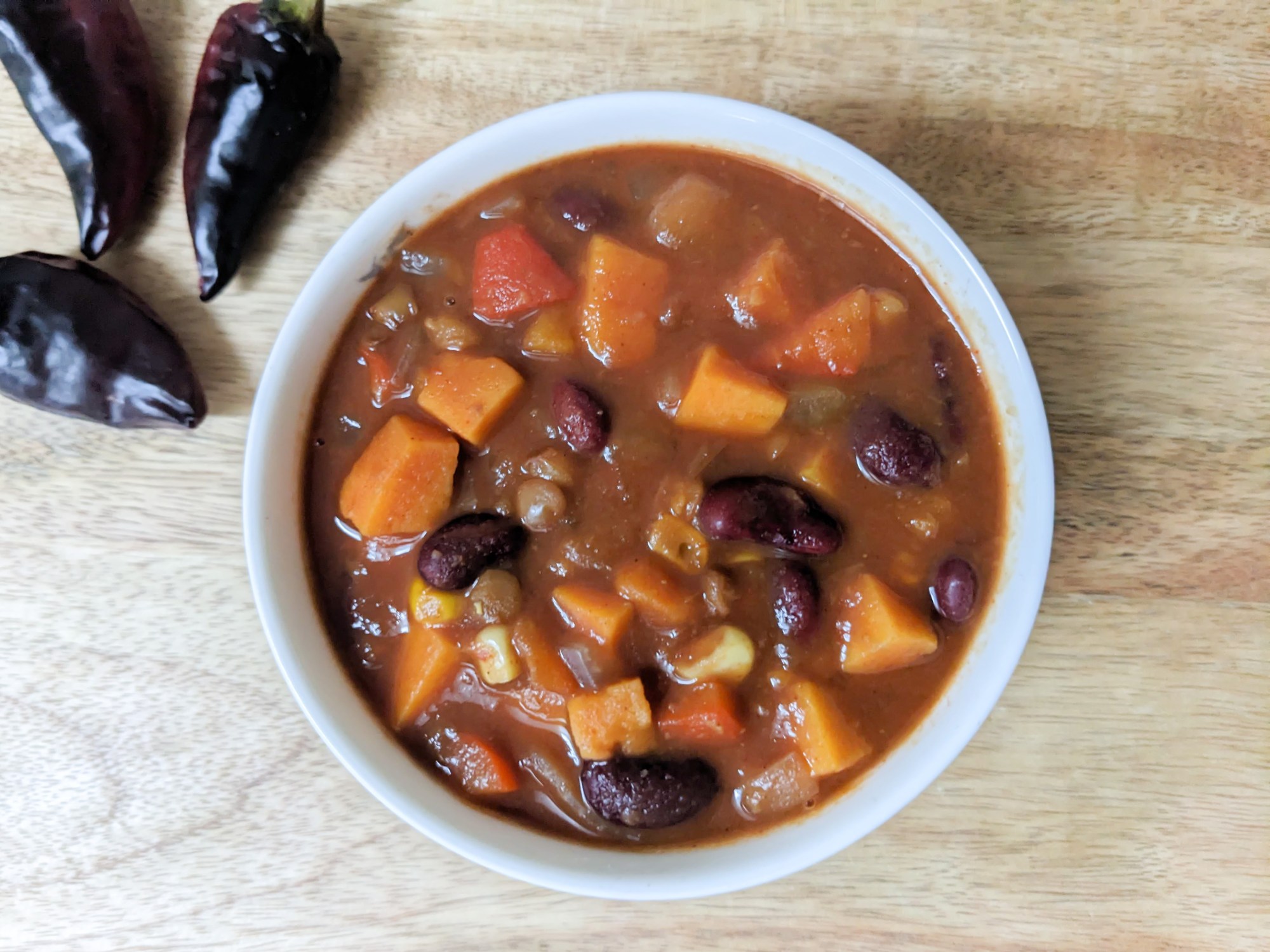 - Dice pepper, onion, sweet potato, carrot, celery.